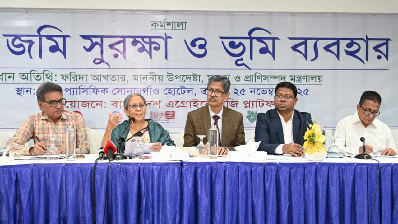 মঙ্গলবার (২৫ নভেম্বর) সকালে প্যান প্যাসিফিক সোনারগাঁও হোটেলে অনুষ্ঠিত ‘কৃষি জমি সুরক্ষা ও ভূমি ব্যবহার’ শীর্ষক জাতীয় কর্মশালায় প্রধান অতিথির বক্তব্যে তিনি এ কথা বলেন। কর্মশালার আয়োজন করেছে বাংলাদেশ অ্যাগ্রোইকোলজি প্ল্যাটফর্ম।