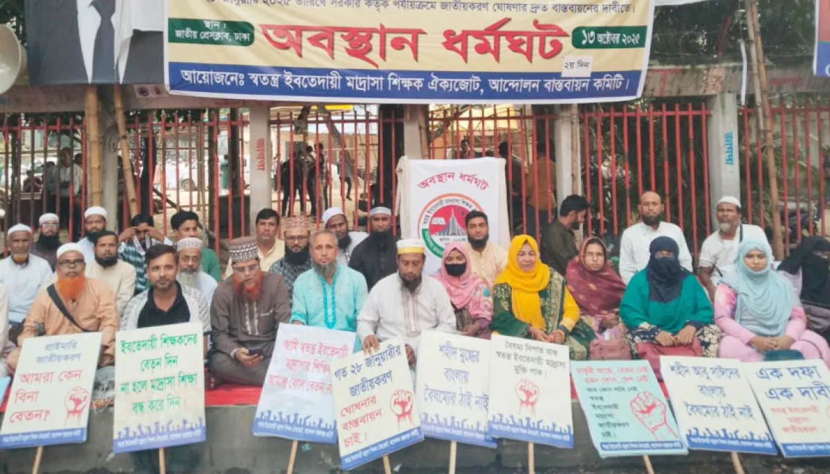 ইবতেদায়ি মাদ্রাসা জাতীয়করণ না করলে লাগাতার অবস্থান কর্মসূচির হুঁশিয়ারি