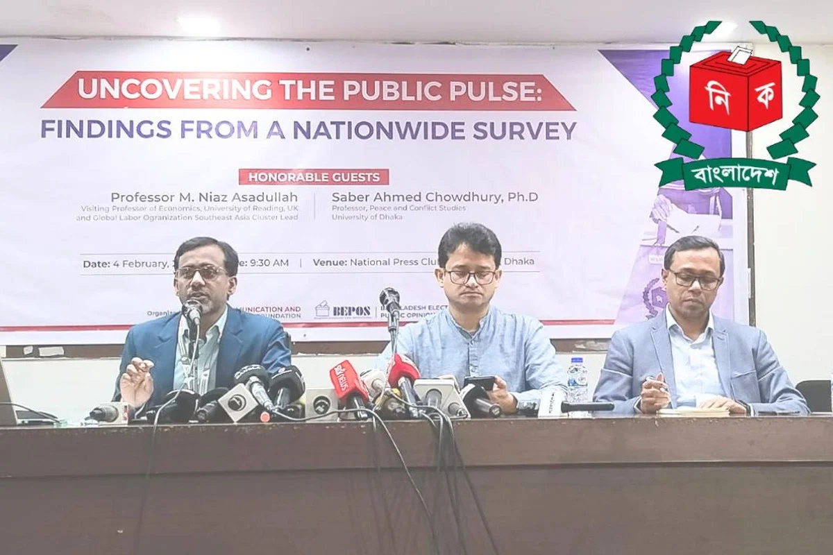 বুধবার (৪ ফেব্রুয়ারি) রাজধানীর জাতীয় প্রেসক্লাবের তফাজ্জল হোসেন মানিক মিয়া হলে ‘আনকাভারিং দ্য পাবলিক পালস: এ নেশনওয়াইড সার্ভে’ শীর্ষক এক গবেষণা প্রতিবেদনে এসব তথ্য জানানো হয়।