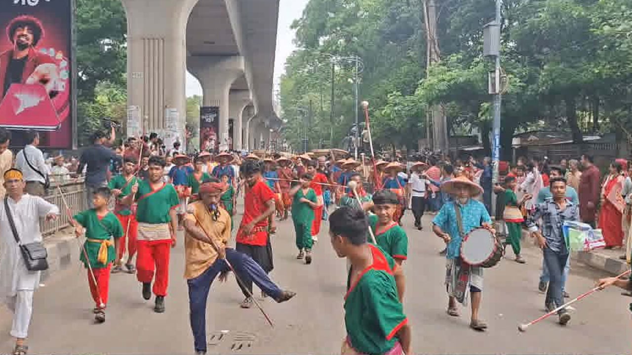পাহাড়-সমতলের মেলবন্ধনে বৈশাখী শোভাযাত্রা, বিশেষ আকর্ষণ লাঠিখেলা