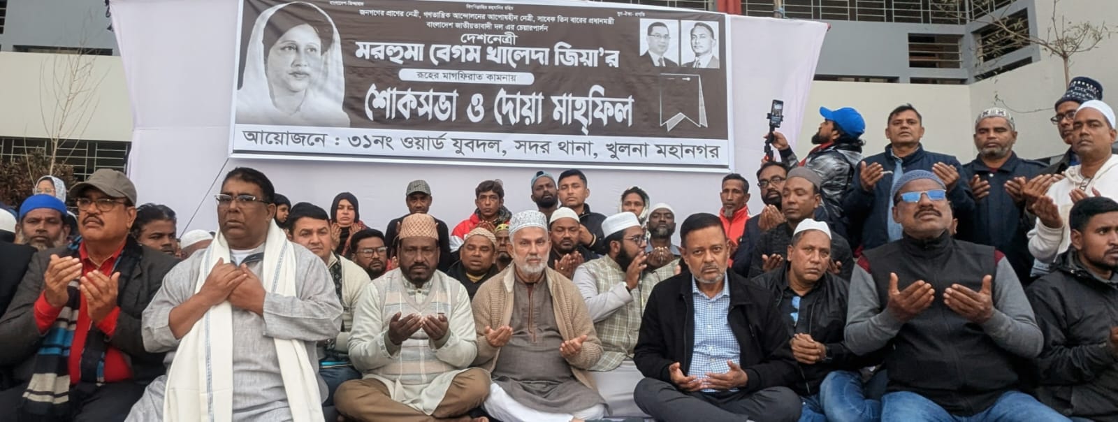 বাংলাদেশের জাতীয়তাবাদী দল (বিএনপি)-এর চেয়ারপারসন, গণতান্ত্রিক আন্দোলনের আপসহীন নেত্রী ও সাবেক তিনবারের প্রধানমন্ত্রী দেশনেত্রী মরহুমা বেগম খালেদা জিয়ার রুহের মাগফিরাত কামনায় খুলনায় শোকসভা ও দোয়া মাহফিল অনুষ্ঠিত হয়েছে।