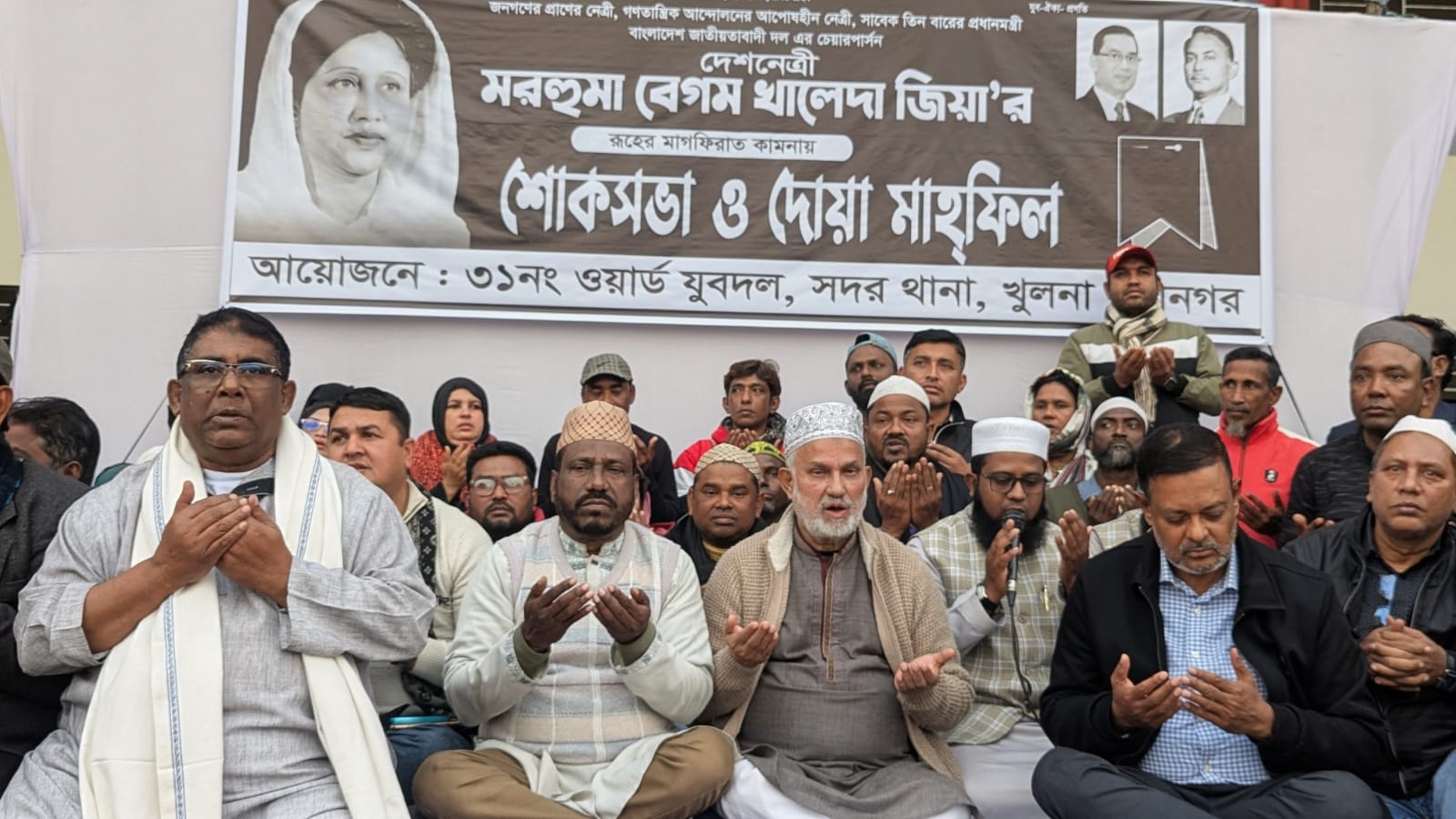 বাংলাদেশের জাতীয়তাবাদী দল (বিএনপি)-এর চেয়ারপারসন, গণতান্ত্রিক আন্দোলনের আপসহীন নেত্রী ও সাবেক তিনবারের প্রধানমন্ত্রী দেশনেত্রী মরহুমা বেগম খালেদা জিয়ার রুহের মাগফিরাত কামনায় খুলনায় শোকসভা ও দোয়া মাহফিল অনুষ্ঠিত হয়েছে।